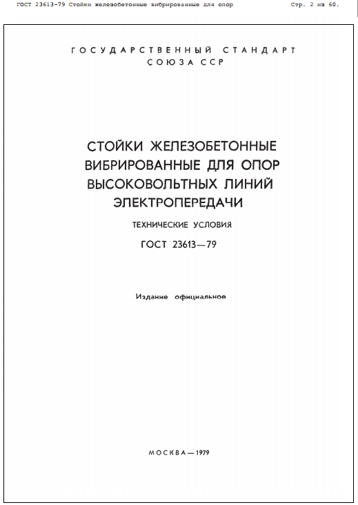 ГОСТ 23613-79. Стойки железобетонные вибрированные для опор высоковольтных линий электропередачи