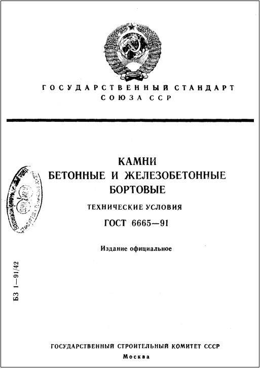 ГОСТ 6665-91. Камни бетонные и железобетонные бортовые