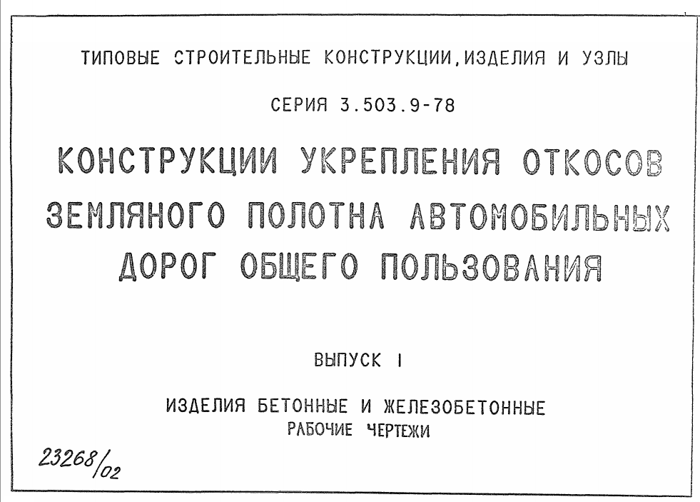 Серия 3.503.9-78. Конструкция укрепления откосов земляного полотна автомобильных дорог общего пользования