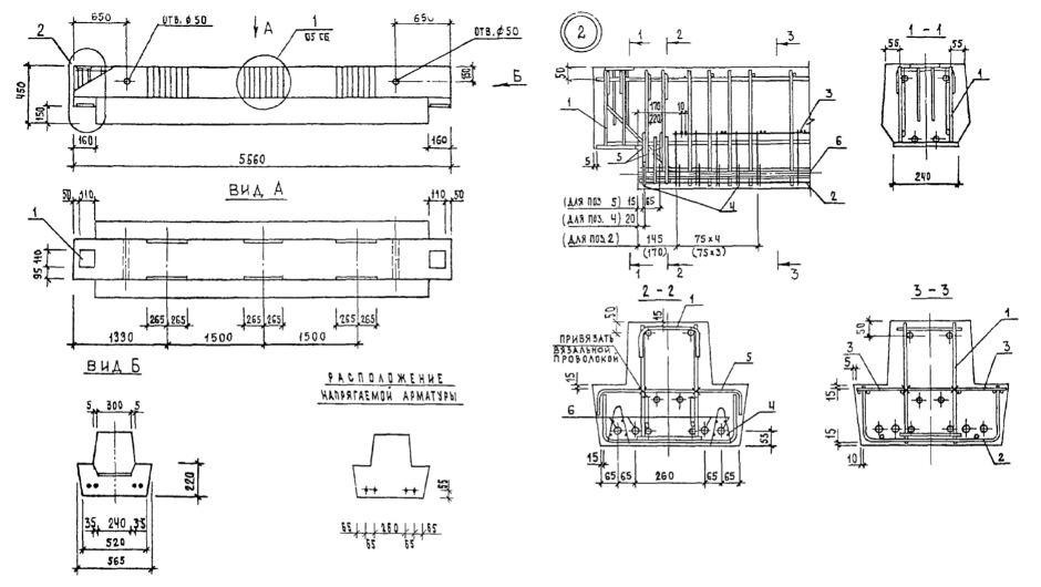 РДП 4.57  Ригели с двумя симметричными полками для опоры многопустотных плит покрытия Серия 1.020-1/83.